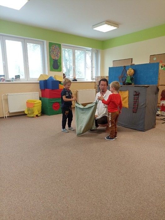 Ve školce dnes máme divadlo s programem ,, Písničky z pohádek ".