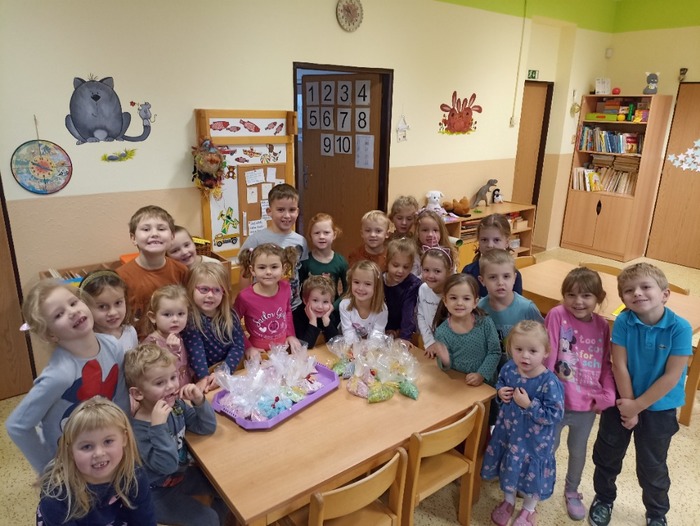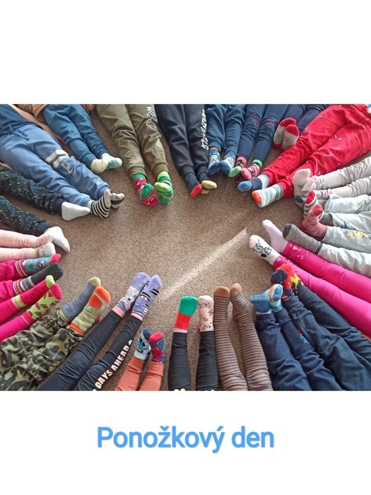 Dnes máme ve školce ,, Den Downova syndromu " ( ,, Ponožkový den " ).