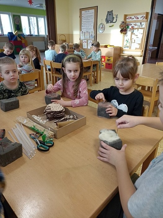 Ve školce máme dnes projektový den. Pracujeme s vlnou, vyrábíme ovečku.