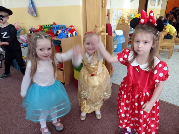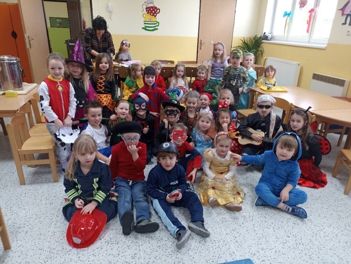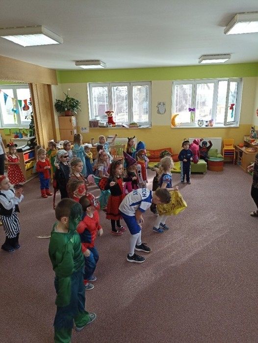 ,, Abraka dabraka kouzelnice, karkulka, šašek, tanečnice. Všichni vás zvem hej, hej, hej, na maškarní rej. "