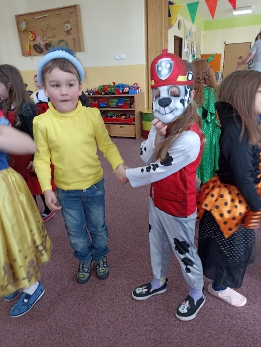 ,, Karneval tu dneska máme, na obličej masku dáme. "